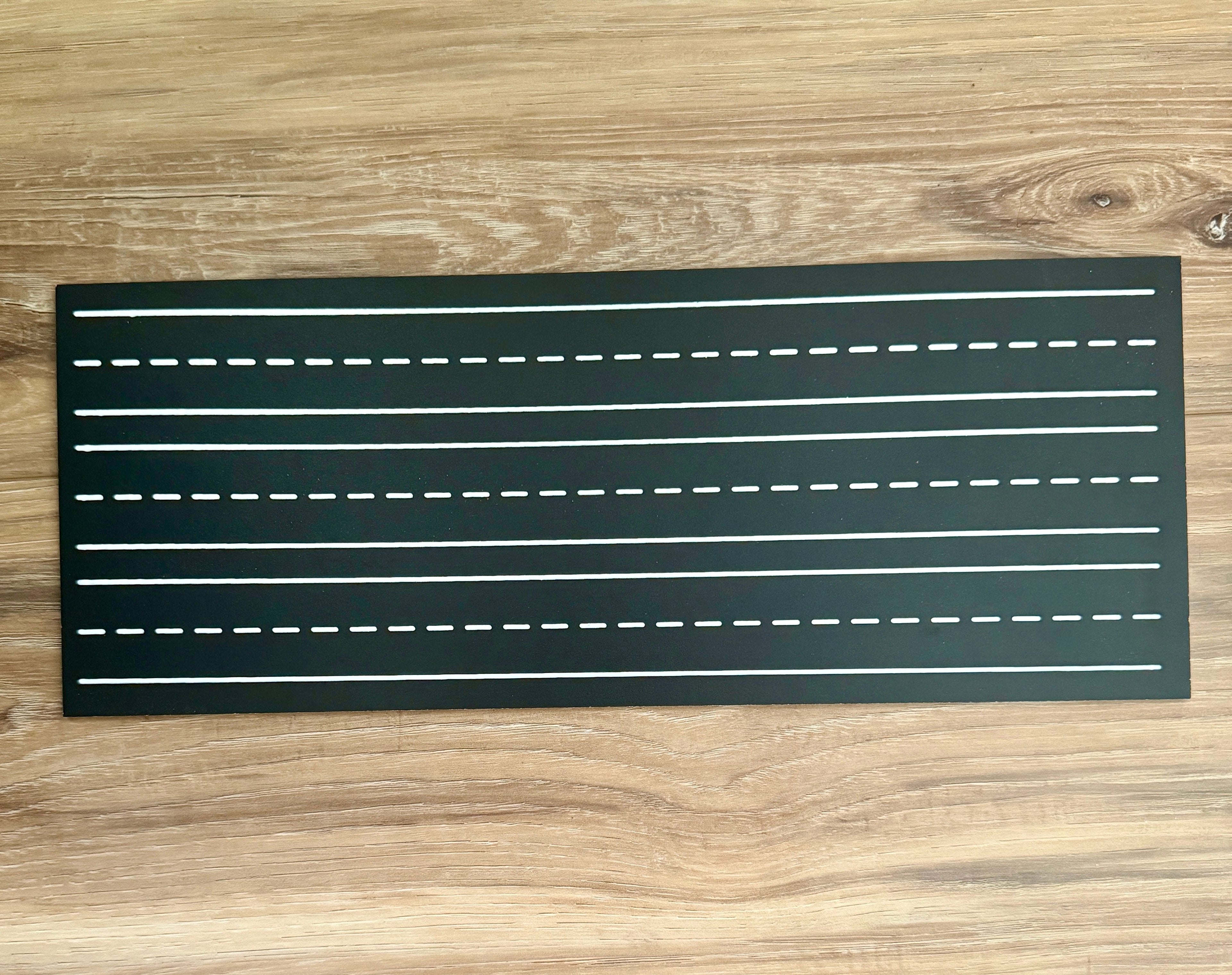 The 3 lined extended writing board is designed for writing longer sentences with narrower lines and longer lanes. It also pairs perfectly with this custom wood tray from Timber Sprout!